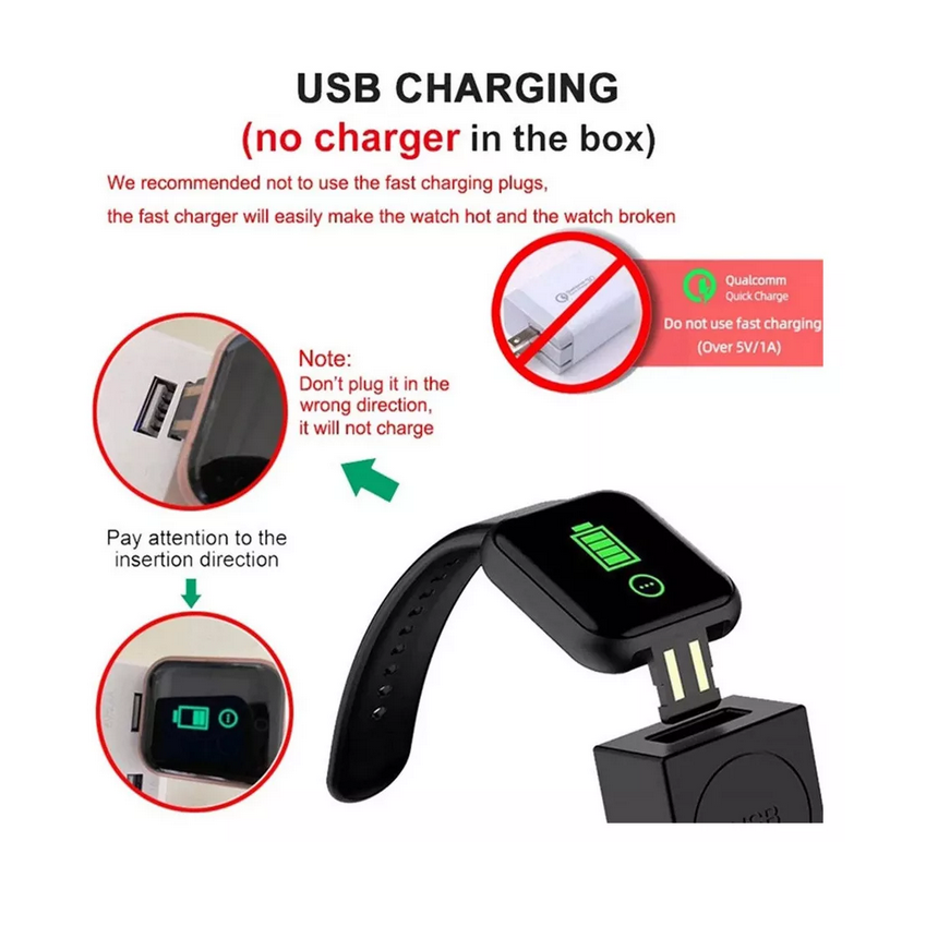 - Este smartwatch se carga con una de las patitas que trae, no es necesario ponerle un cable (por lo cual no incluye cable).